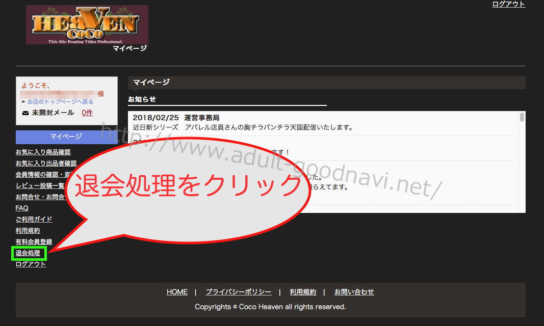 退会方法の画像解説