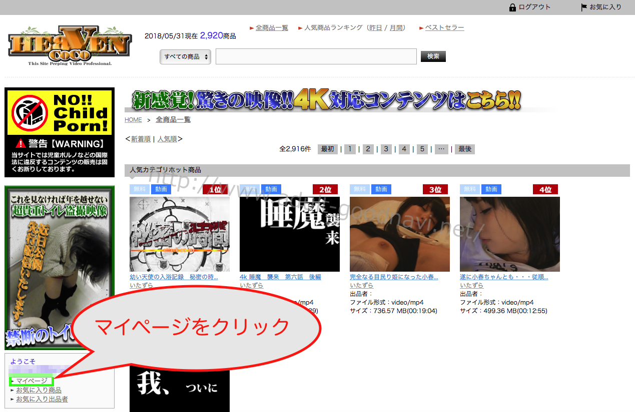 『CoCo Heaven』は、4K動画対応月額定額制の有料盗撮動画サイトです。