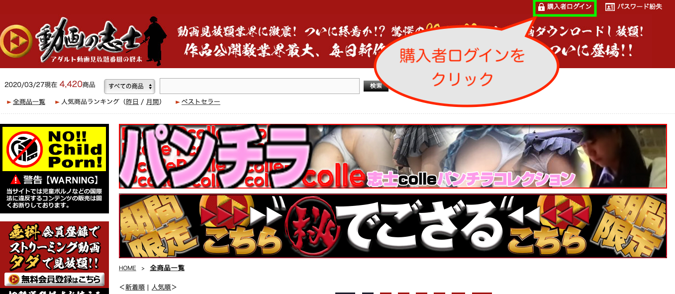 『動画の志士』は月額定額制の有料盗撮動画サイトです。