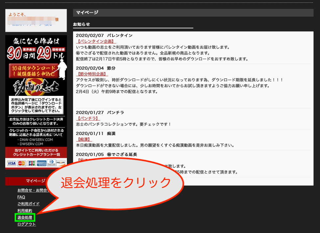 この時点で、動画の志士有料版を退会した事になります。