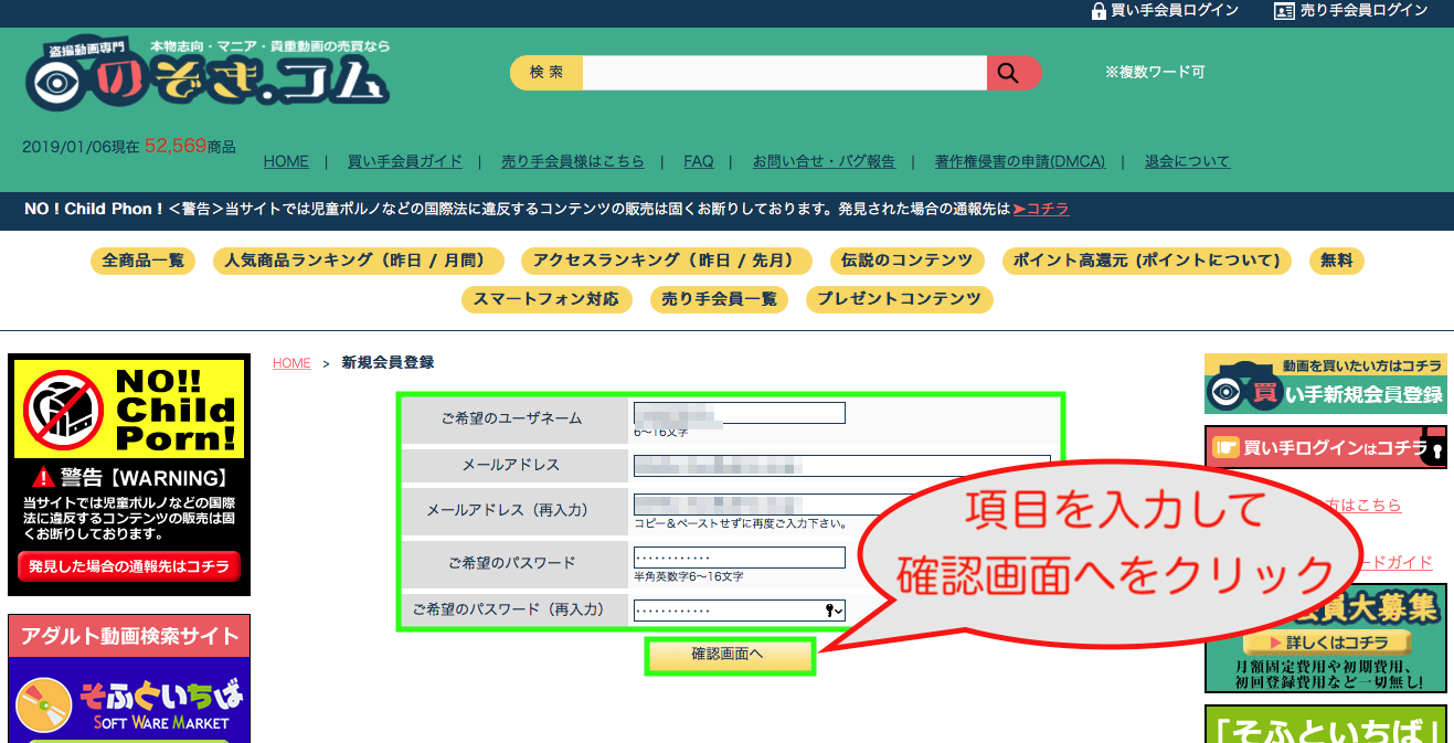 のぞき.コム【そふといちば】の入会方法(クレジットカード)をご紹介します。